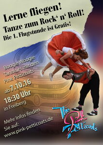 In 12 Einheiten erlernt ihr die Grundelemente des Boogie-Tanzens, mit denen ihr auf der nächsten Party gewiss abhebt. Die erste Flugstunde findet am 07.10.2016 von 18:30-20:00 Uhr im Speisesaal der Siltronic AG in der Berhelsdorfer Straße 113 (Freiberg) statt. Ihr könnt euch ab sofort unter info@pink-petticoats.de einchecken. Der Preis für den Kurs beträgt 60 €.