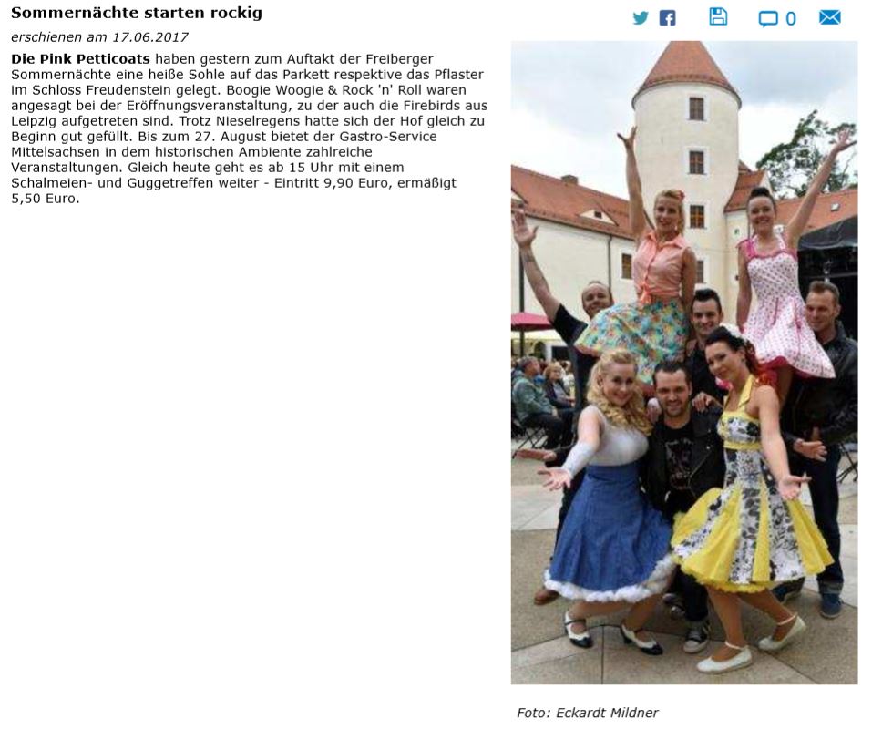 Zusammen mit den Firebirds eröffnen die Freiberger Tanzgruppe Pink Petticoats die diesjährigen Sommernächte im Schloss Freudenstein.